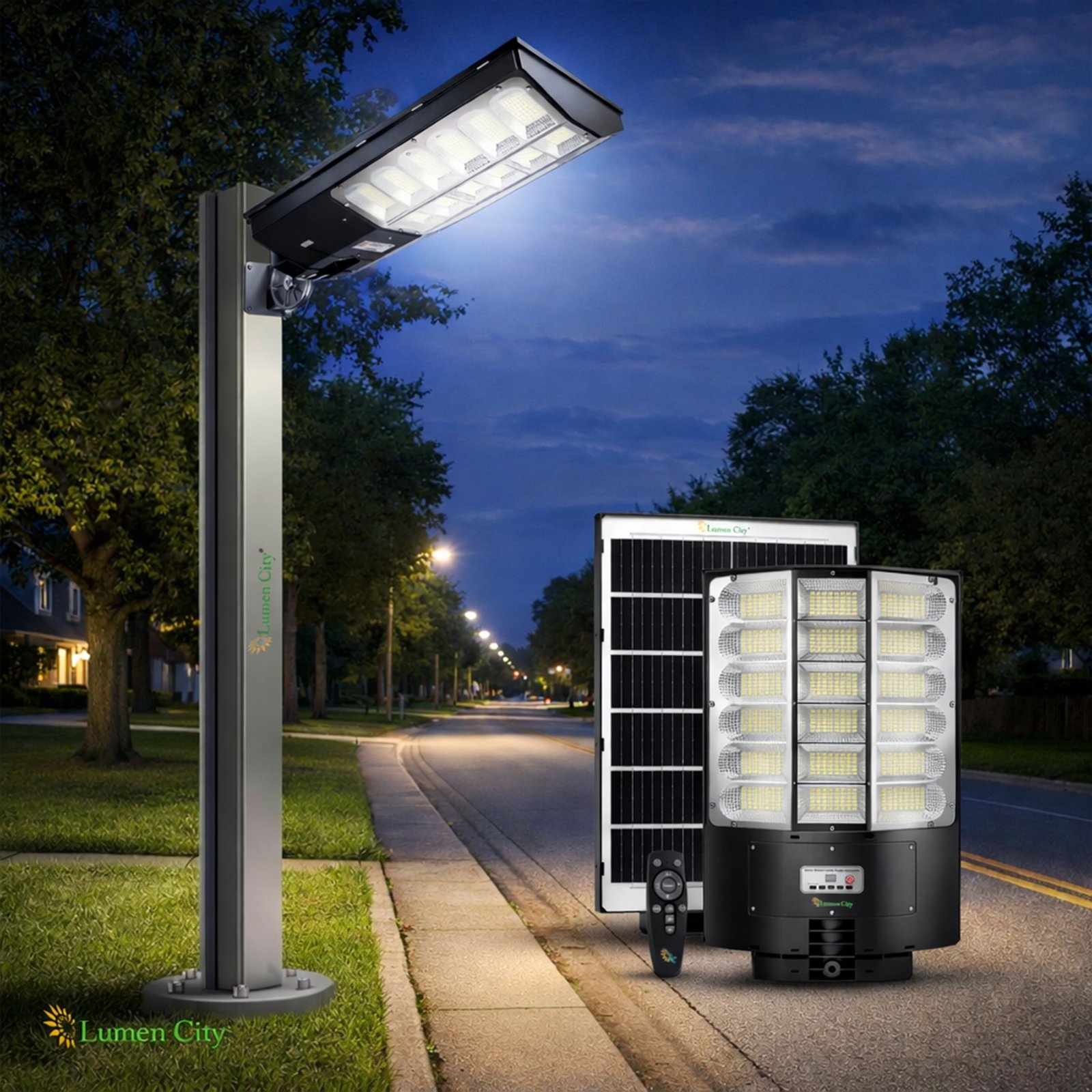 The AERO PLUS 30W Solar Street Light is a high-performance, energy-efficient outdoor lighting solution designed for streets, societies, campuses, parking areas, and rural roads. Powered entirely by solar energy, it delivers powerful 3600 lumens brightness with reliable two-night backup, ensuring uninterrupted illumination even during low-sun conditions.