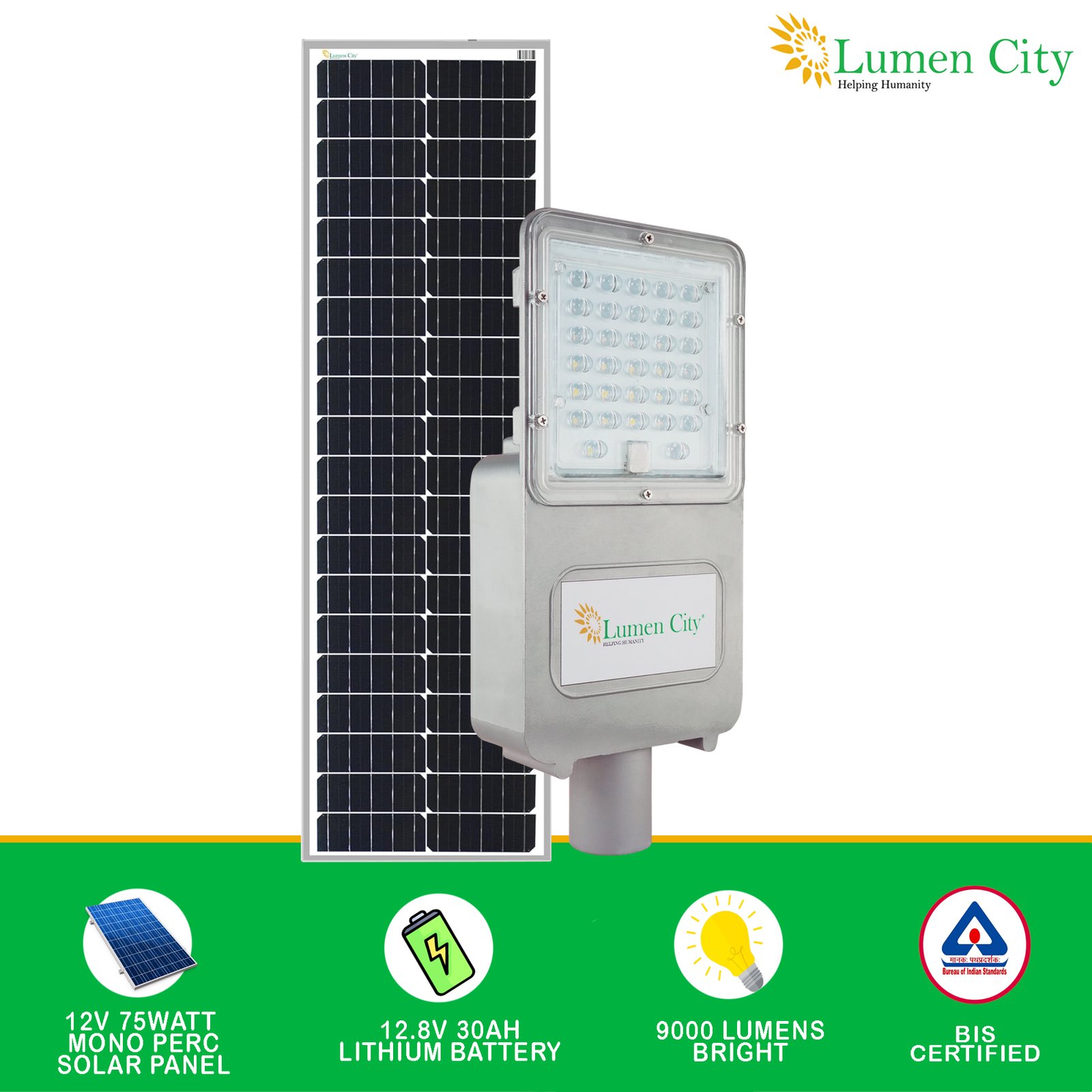 As Per MNRE SPECS | 12V DUAL MPPT CIRCUIT | Semi-Integrated Solar Street Light 75W | -3 nights Backup | 30000mah Battery | Metal Body