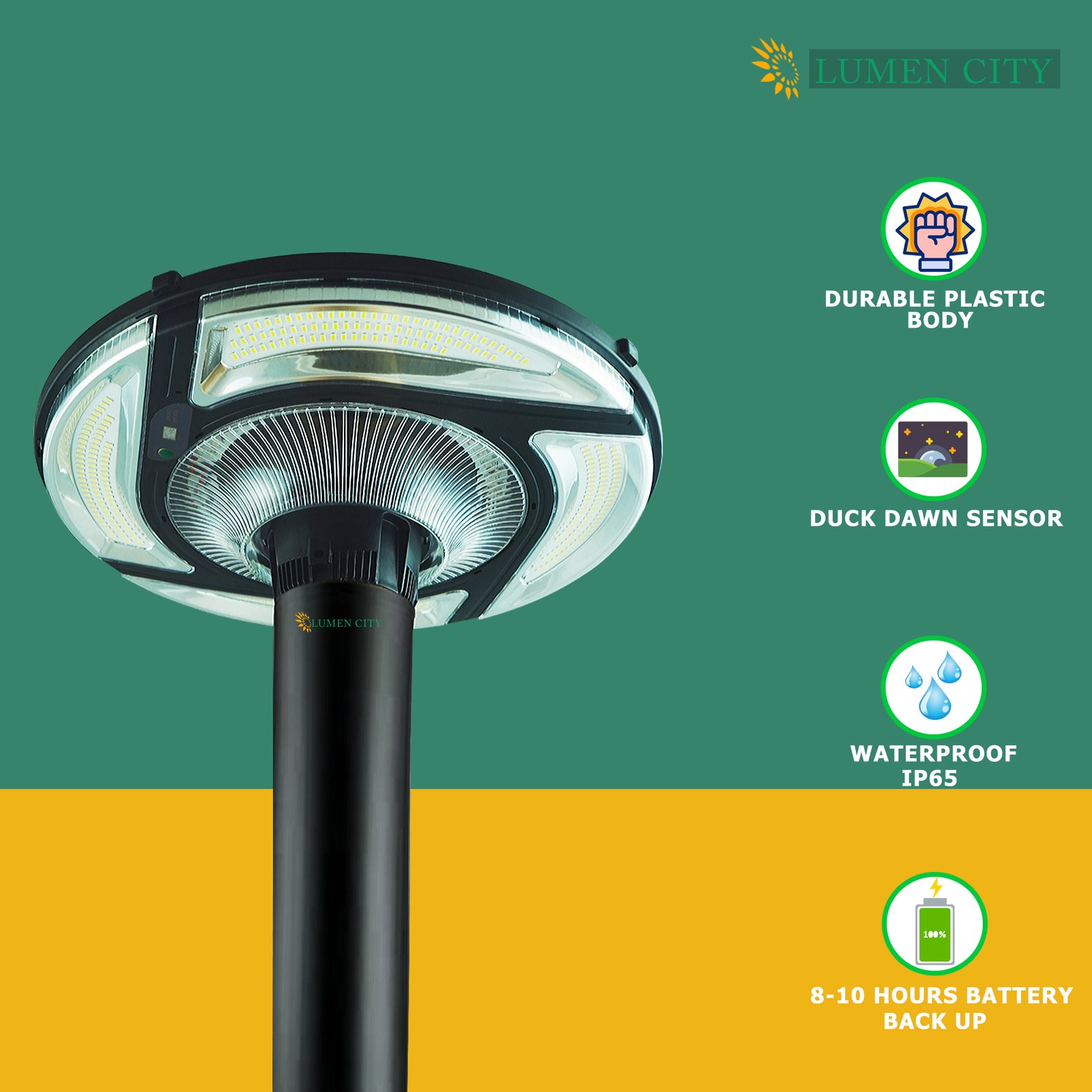 Transform your outdoor spaces with the RGB UFO Garden Light 15W, a perfect blend of cutting-edge technology and elegant design. This garden light is more than just a source of illumination; it’s a statement piece that enhances the beauty and ambiance of your home, garden, streets, and pathways.
