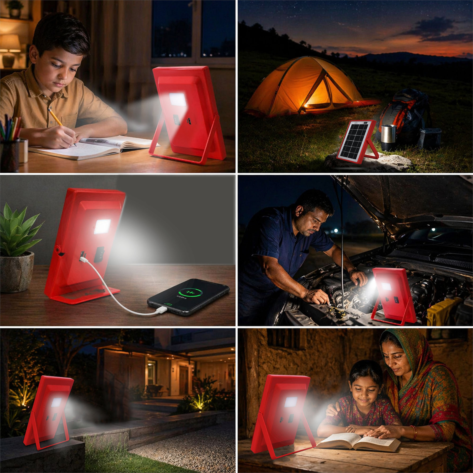 The 3W Mini Solar Flood Light (Model 1211) is a compact, self-powered LED flood light designed for homes, rural households, balconies, small outdoor spaces, and emergency lighting needs across India. Equipped with a 5V 2.5W solar panel and a 3.7V 2000mAh rechargeable battery, it delivers 8 to 12 hours of backup illumination on a full charge. The built-in USB output doubles as a mobile power bank, making it an ideal off-grid lighting and charging companion. Whether you live in a housing colony, a village, or a farmhouse, this solar flood light eliminates the need for grid electricity entirely.